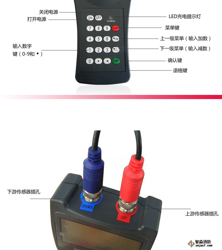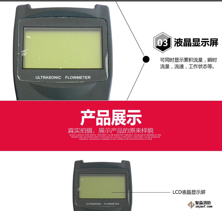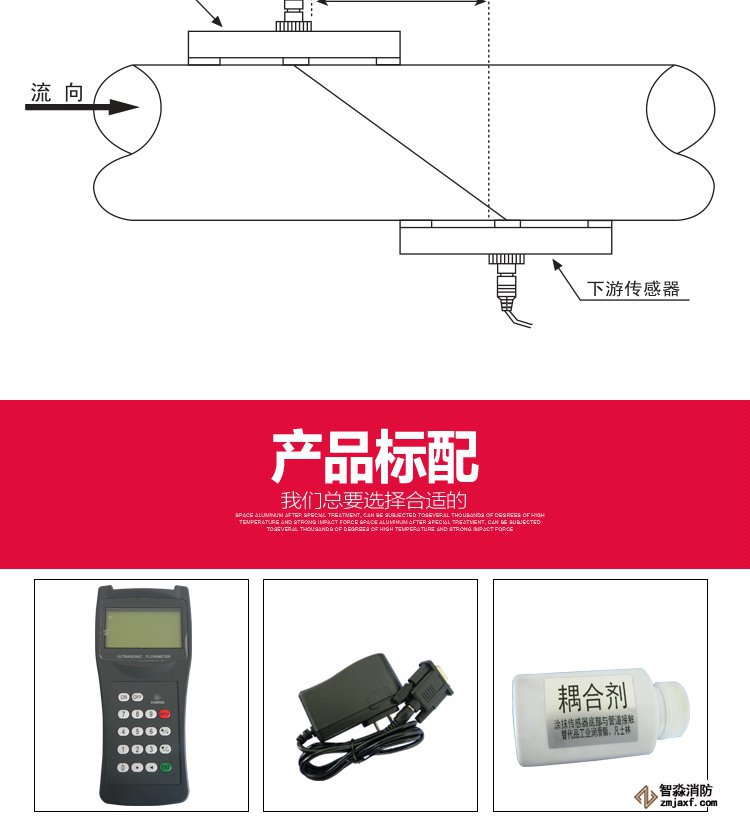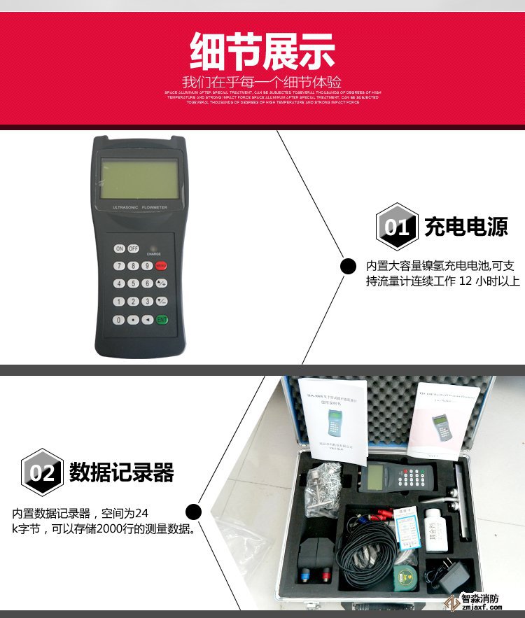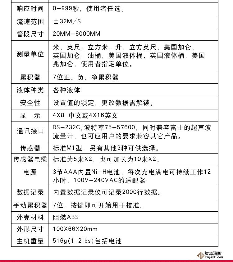 超声波流量计测量管径范围:0mm~300mm;精度:1%用于检测消火栓系统和水喷淋系统的给水量以及消防竖管的流量分配。